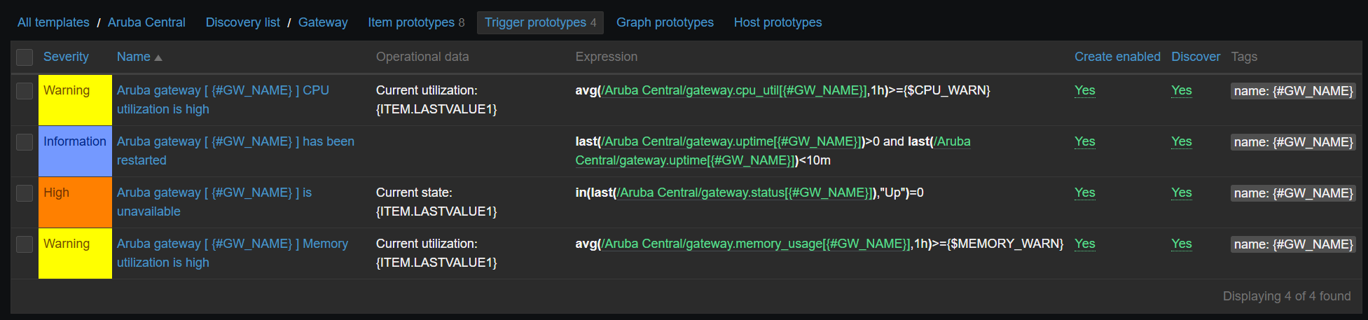 Some triggers are intentionally disabled, because they are a bit redundant. However, I wanted to cover all options. Sometimes less alerting is better if you have a ticketing system integration, otherwise your monitoring system will turn into a ticket factory.