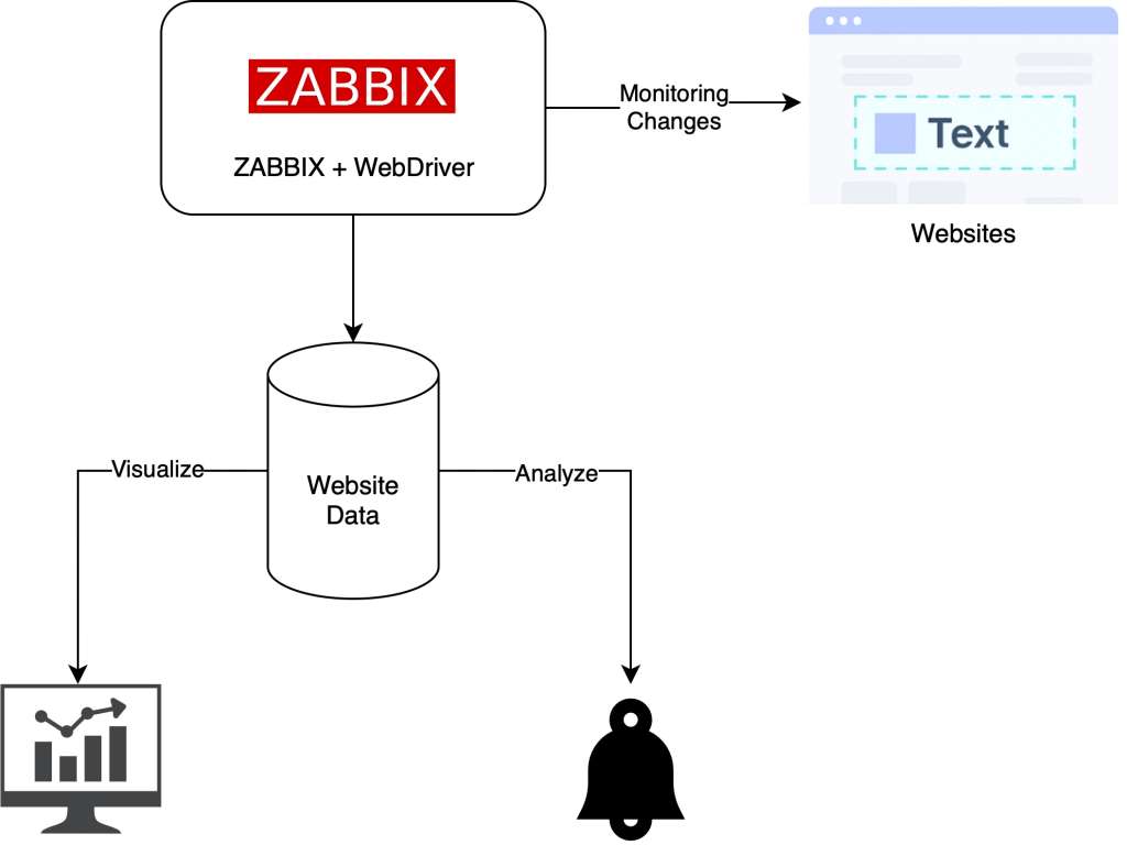 This diagram shows how Zabbix uses a WebDriver to capture and analyze website content.