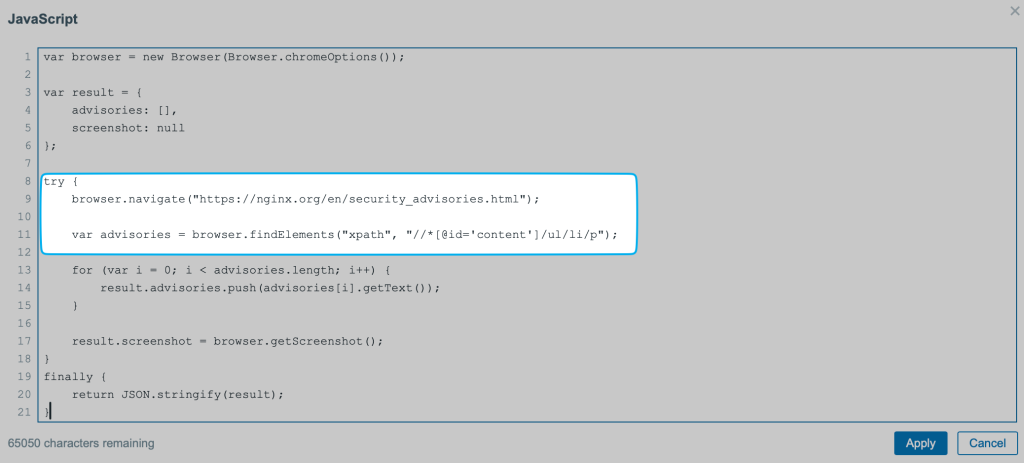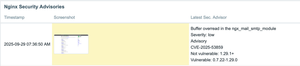 In this example, we’ll monitor changes on the Nginx Security Advisories webpage.
